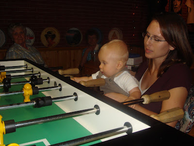 It looks like Aidan is playing the shake of the day with my father-in-law, but there's really a car under that cup, he's too young to gamble!